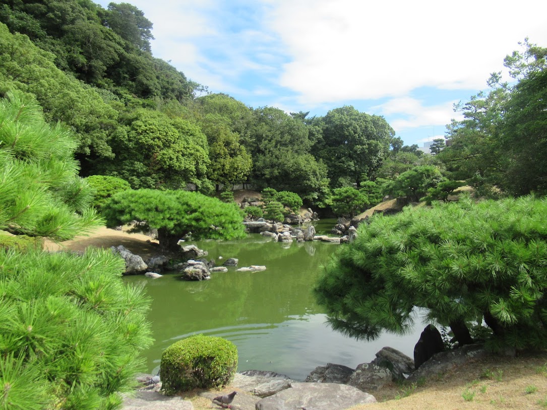 最終日は徳島市内をぶらぶらと。先ずはこの庭園。阿波徳島藩を治めた大名・蜂須賀氏が桃山時代に築城した『徳島城』の表御殿に作庭された庭園です。お城は残っていませんが、徳島駅近くの徳島城博物館に併設されています。 |