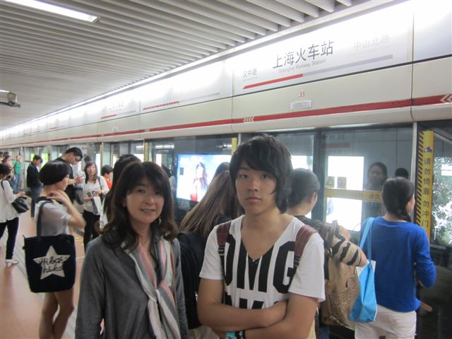 【上海火?站 】 というわけで、蘇州で1日遊んで、また新幹線で上海まで帰ってきました。ここは地下鉄の駅です。 |