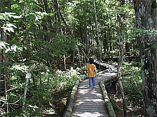 寝入りの杉がありました。夜になると杉の木がいびきかくんだって。 |