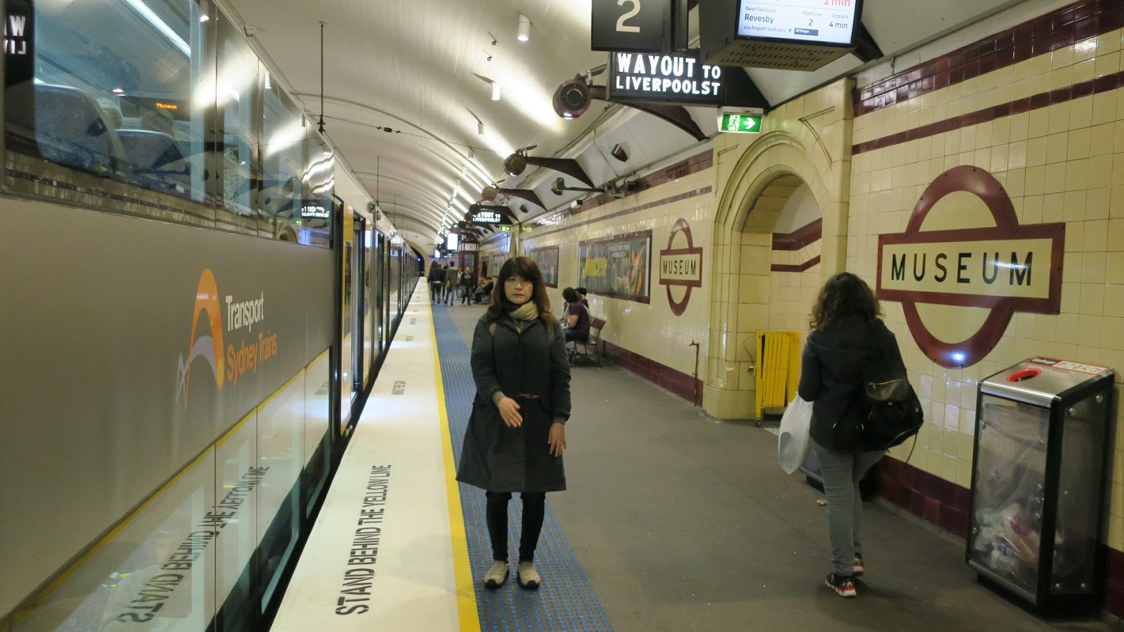 帰りの電車。ホテル近くのミュージアム駅です。 ロンドンの地下鉄みたいでしょ? 駅名のマークも色以外はおなじ。 出口もリバプールストリートへとなっているし。