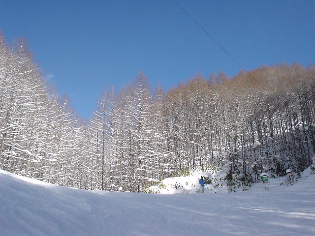 ゲレンデは谷間をすべるコースなのでとっても安全。他のスキーヤーもあんまりいなくって、若者ボーダー(←うざい)も微量、リフトは待ちゼロ。地元っぽい子供たちがすんごいテクニックで滑っていくスキー場です。かっこいい! |