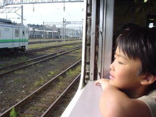 | 3時間25分で函館につきます。景色はすっかり北海道らしく、広々としたものになってきました。列車は1両編成でクーラーはありませんがトイレだけは確実にあります。安心してビールがのめるね。タバコは吸えないけど、単線なので列車の行き違いで6分とか駅に止まるのでその間にホームで吸えます。 |