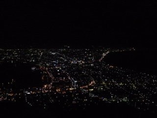 | 夜もすっかり暮れて、ロープウェイに乗って函館山へ登りました。有名な函館の夜景です。今日はこれでおしまい。鈍行列車を堪能しました。もういい!でも、今回の旅は陸路で帰ることになってるし、まだ始まったばっかりです。 (→次いってみよー!)