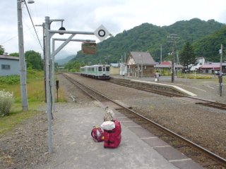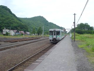 | ぷらぷらとお散歩を終えてやってきました次の列車。一両編成です。これで長万部(おしゃまんべ)まで行きます。 |