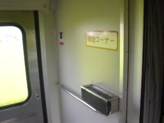 | 快速ですが、デッキには喫煙コーナーもあります。さすが5時間列車! |