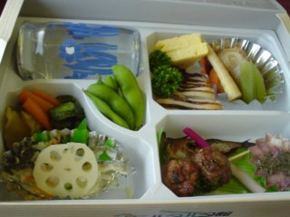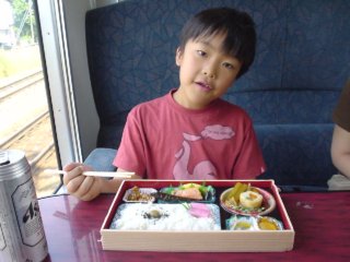 | そして駅弁。これはしらかみ弁当といってこの列車でしか味わうことができません。青森〜秋田間の名産品が詰め込まれています。 |