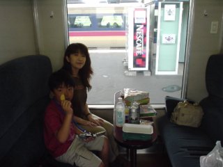 | 4両編成で、うち2両はコンパートメント!(個室)大阪なら8人座れる広さを3人で貸切です!これで憧れの五能線を走破します。 |