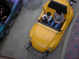 カートピアです。まち時間5分。ハンドルは子供がにぎって、アクセルはパパが踏みます(子供ではとどかない)。「パパ、もっとゆっくりにして..」「なんで?」「終わるのがさみしいねん」。これをきいて3回ものるはめに。