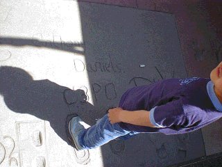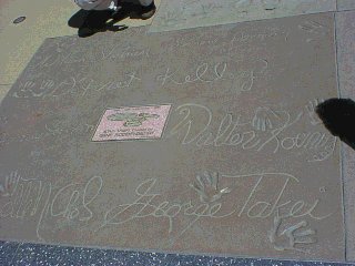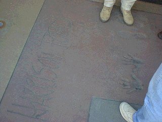 ここはチャイニーズシアターです。地面に有名人の手形,足型があります。