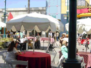 ライブでジャズをやっていました。現地の人々はのんびりカフェでお茶しながら聞いています。ええなぁ、ボーっとして。 | |