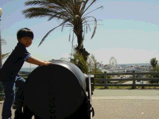 これはサンタモニカの海岸線にある大砲です。向こうにはピアの観覧車が見えます。 | |