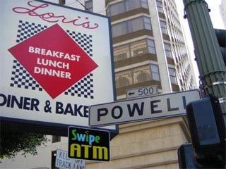POWELL通りとSUTTER通りの角にあるこの店で朝食をとりました。ばりばりのアメリカっていう感じのお店でなかなかGoodでした。POWELLはケーブルカーが通る道で、これから私達は何度もここを通うことになりました。この通り沿いにある本屋やスーパー、ディズニーショップや雑貨屋さんなどを見て回りました。