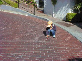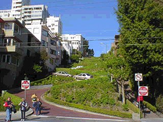 これまた有名なロンバードストリート。世界一曲がりくねった道だとか。一方通行で急勾配の下り坂です。