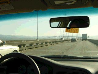 帰りにはサンマテオブリッジを渡りました。本当に海の上ですよ。すごい!これで通行料は$2です。日本の物価の高さを痛感しました。 | |