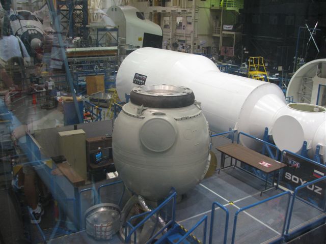 もちろんロシアのソリューズもありましたよ。(ぼろい) 昔の潜水艦みたい。ぜんぜんかっこよくない! |