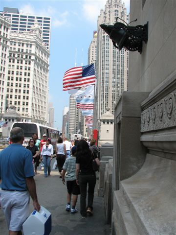 シカゴで一番有名なショッピング通り「ミシガン通り」(魅惑の1マイル)です。 有名ブランドショップが立ち並びます。 |