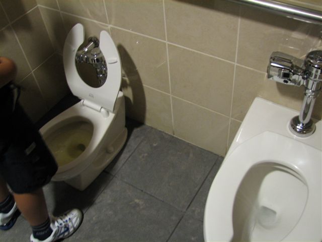 ↑上の写真、クリック拡大してよく見てください。 DAD'S WELCOME(父ちゃんもどうぞっ)って、笑らかす。 中は写真のようなつれション(大も可)便器や、ソファーもあって、 マミーの化粧直し中も一緒にソファでくつろげるー。 |